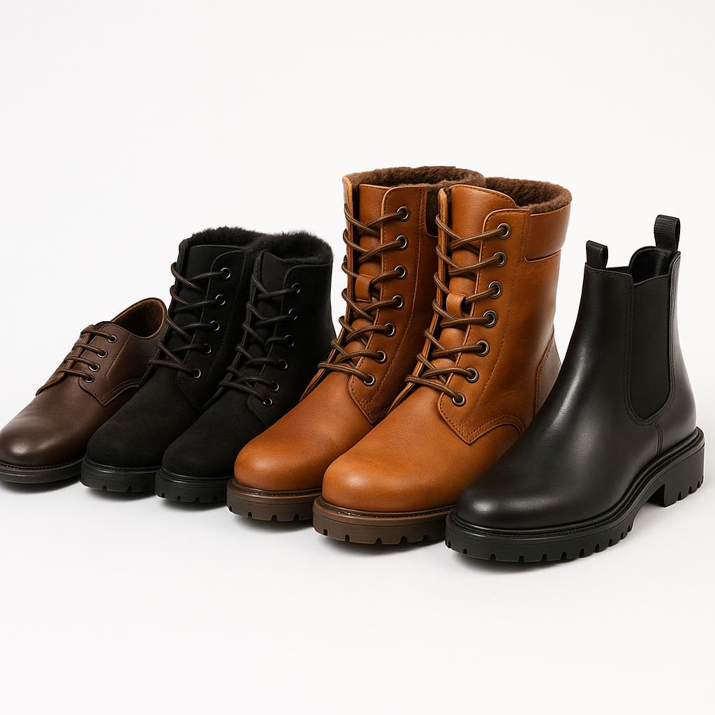 Если обувь предназначена для детей, для спорта или как средство защиты, применяются иные требования и схемы — в данной странице рассматривается именно повседневный взрослый ассортимент осенне-зимней группы.